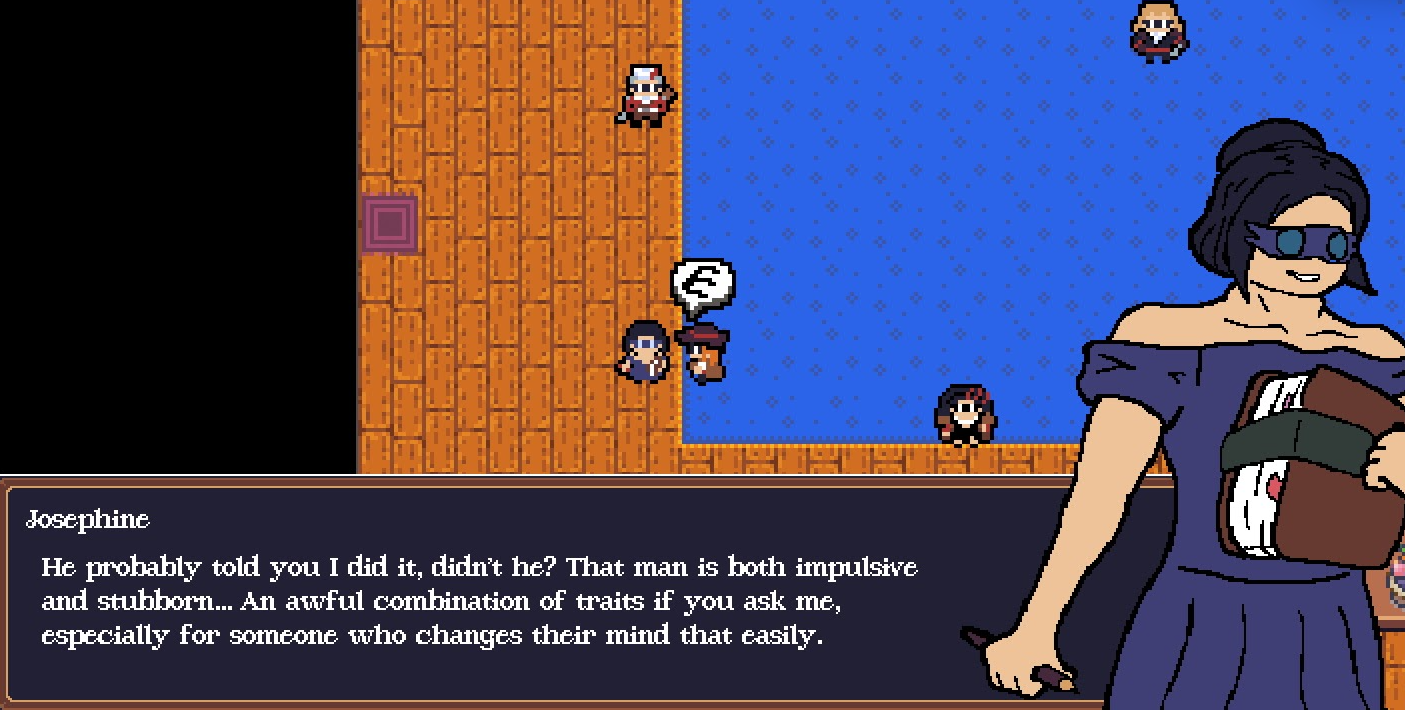 Explore their mansion and discover their secrets, change between multiple masks to extract information out of them, and eventually determine the murderer.